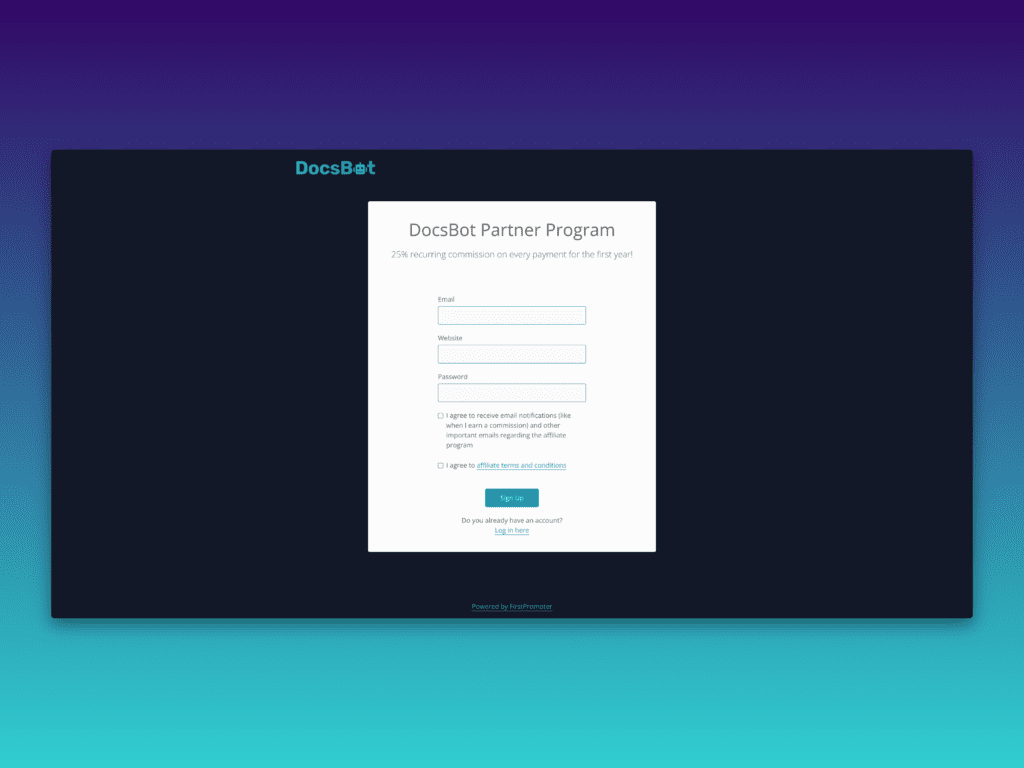 Sign Up: Kickstart your adventure by signing up for the DocsBot Partner Program through First Promoter.
