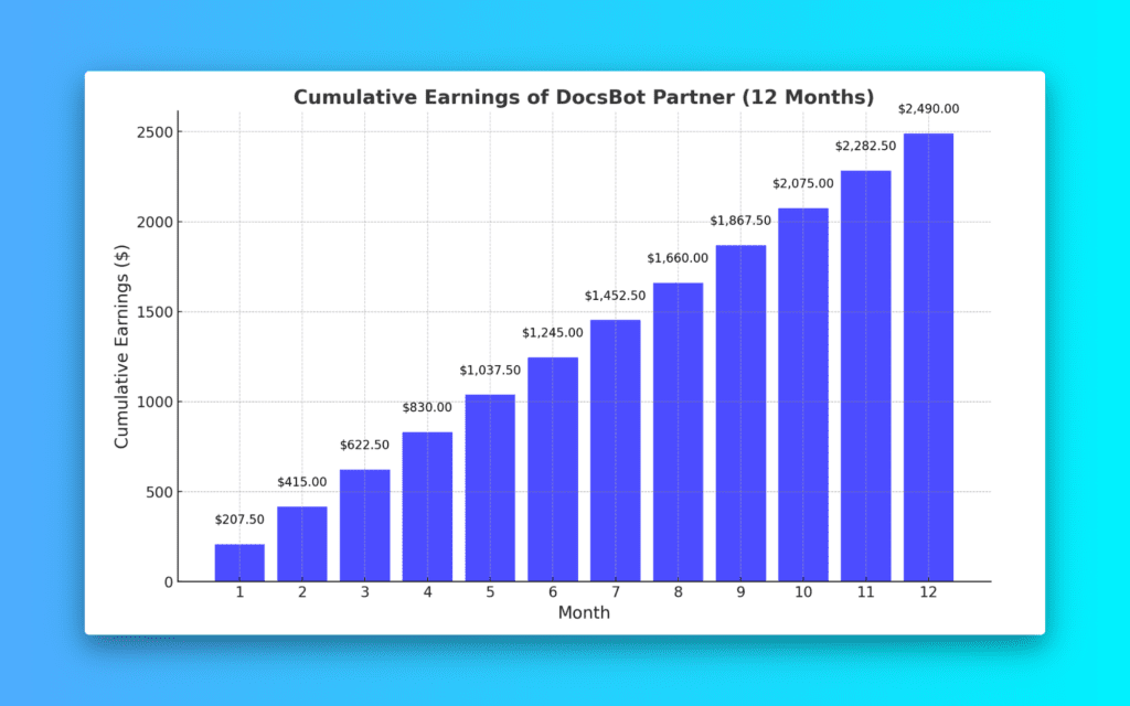 We’re here to load you up with all the cool stuff you need to get the word out. Your main gig? Just keep those referrals coming and watch your earnings grow with DocsBot AI!