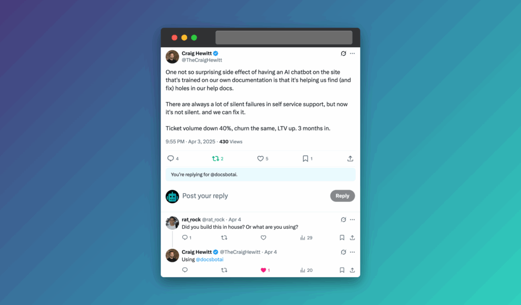 “Most of our support effort now goes into improving the help docs, which makes the bot smarter every day.”