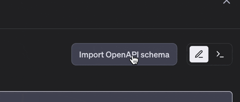 Select “Import OpenAPI schema” in the “Actions” section and input the DocsBot OpenAPI schema URL from the sharing popup on your DocsBot dashboard.