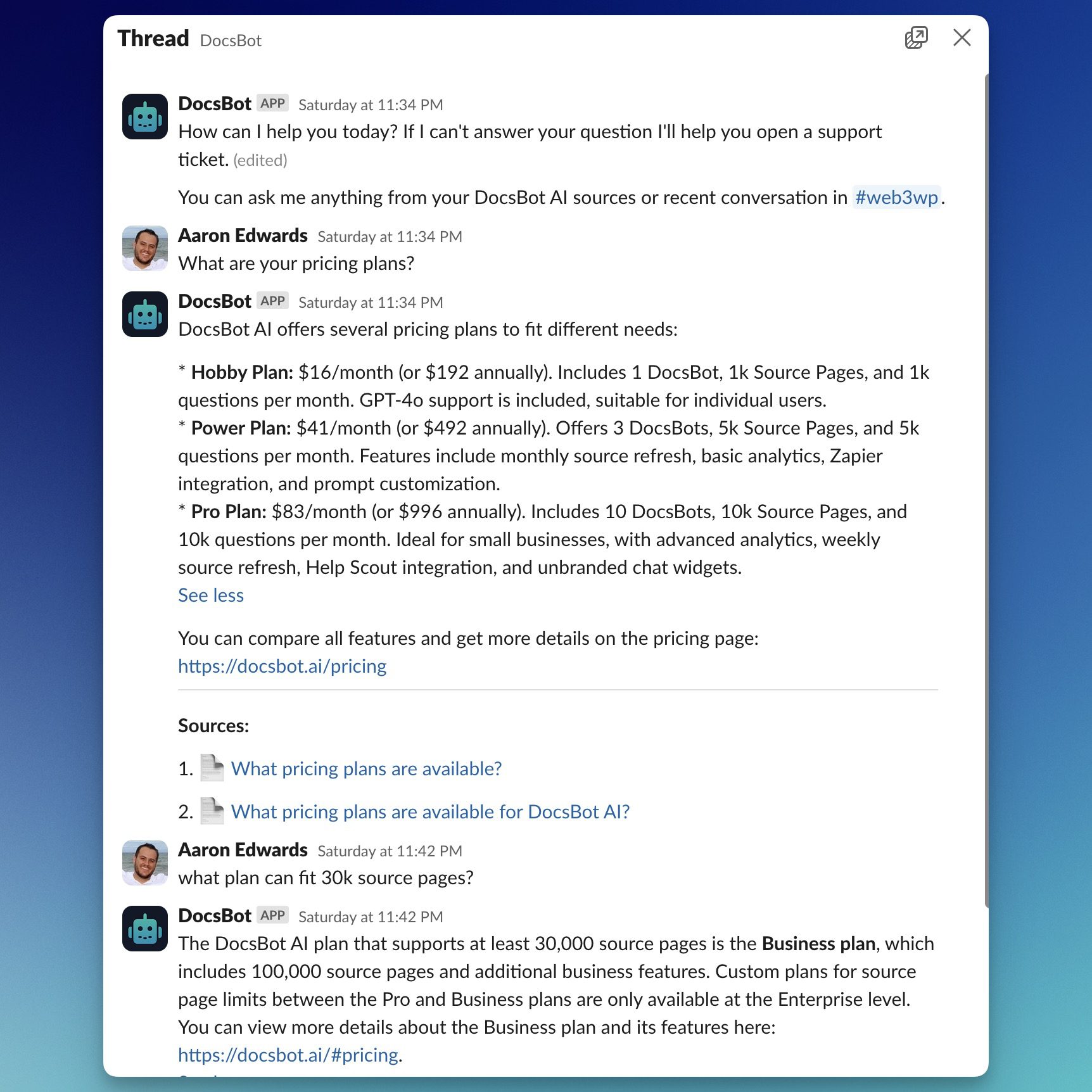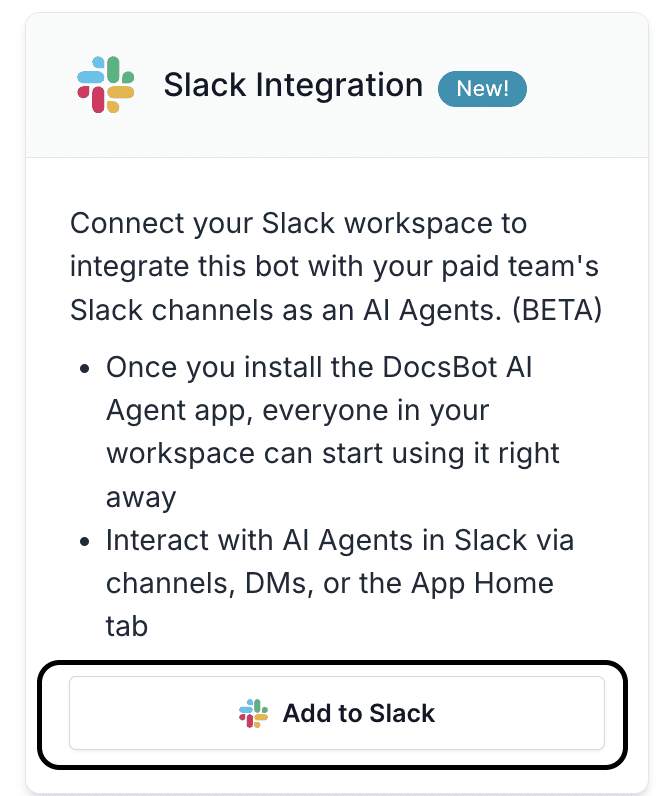 Ready to supercharge your Slack workspace with DocsBot? Follow the steps above to connect and start enjoying the benefits today! (Personal plan or above required)
