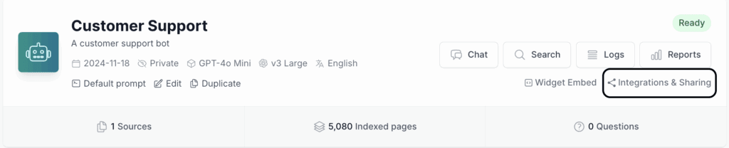Here you’ll have instant access to your DocsBot trained on your data at anytime!