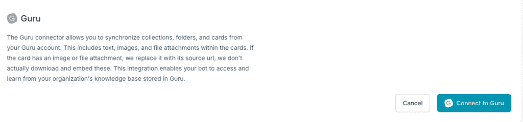 Integrating your Guru knowledge base with DocsBot is a powerful way to enhance your bot’s training by leveraging the valuable content stored in Guru. This step-by-step guide will help you connect your Guru account to DocsBot, allowing your bot to access and learn from your Guru data. By following these simple instructions, you’ll ensure your bot is equipped with the latest knowledge to deliver more accurate and informed responses.