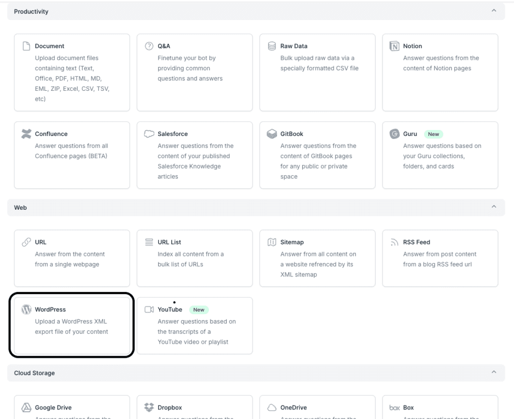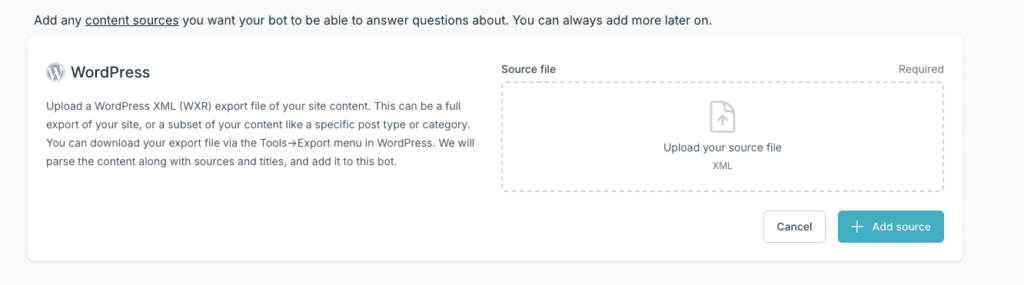Next, we will review how to train your Docsbot on your WordPress .XML file.