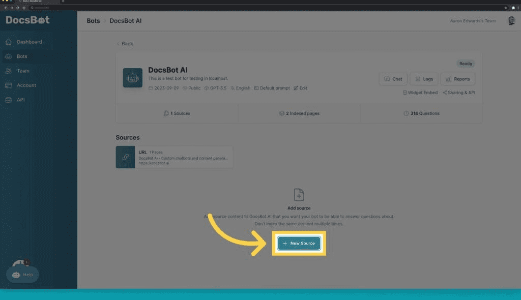 Select your bot and choose New Source