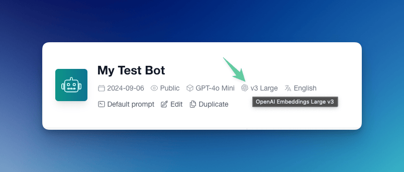 - Model Compatibility: It’s important to note that embeddings generated by different models are incompatible with each other. This means that once a bot is created with a specific embedding model, it cannot be switched to another model without recreating and retraining the bot.